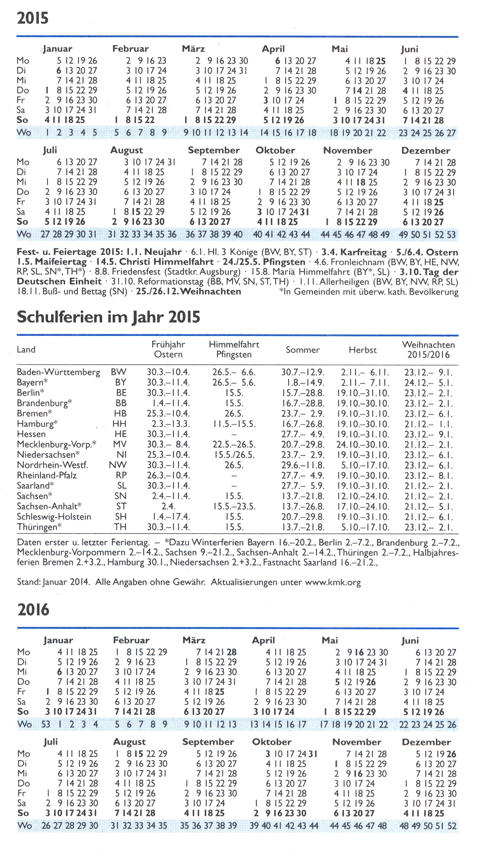 Ferientermine für das Schuljahr 2015